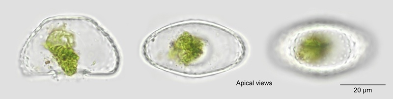 Cell dimensions: L. 47-56 µm; B. 40-49 µm; Is. 11.6-17 µm; Th. 24-27 µm; L/B. 1.05-1.29.