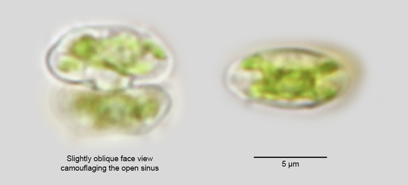 A recently described very small desmid found in several lakes in France. Named after Lac de l'Esclauze, Auvergne, France. See Kouwets (2025) for similar species but this cell has a particularly narrow isthmus.