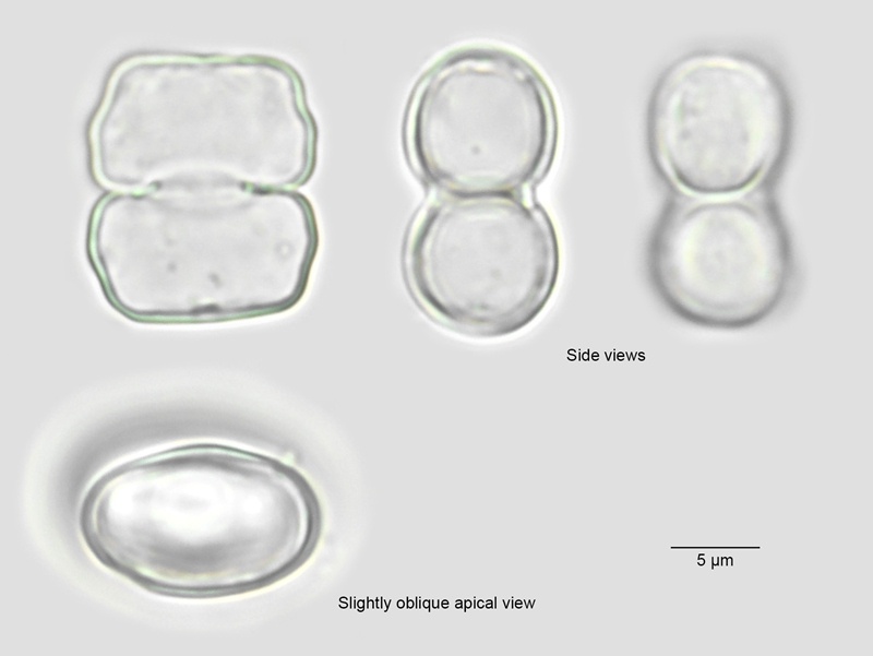 Cell dimensions: L: 15.1- 17.9 µm; B: 13.6-15.4 µm; Is: 4.8-6.3 µm; Th: 8.5-8.9 µm; L/B: 1.17-1.21.