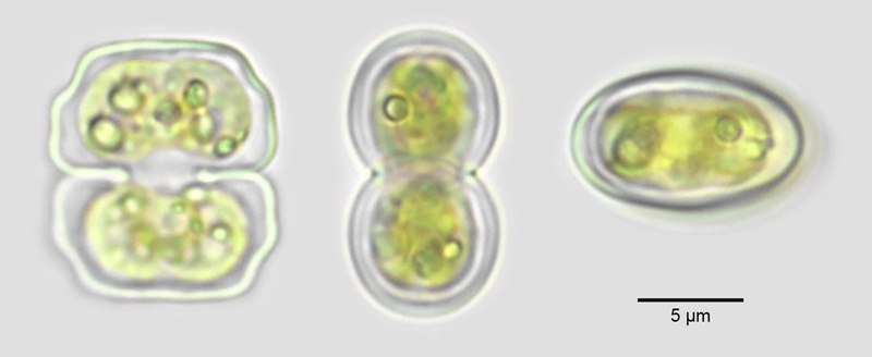 Cell dimensions: L: 12.3-14.4 µm; B: 10.8-13.4 µm; Is: 4.2-4.6 µm; Th: 6-7 µm; L/B: 1.08-1.20.