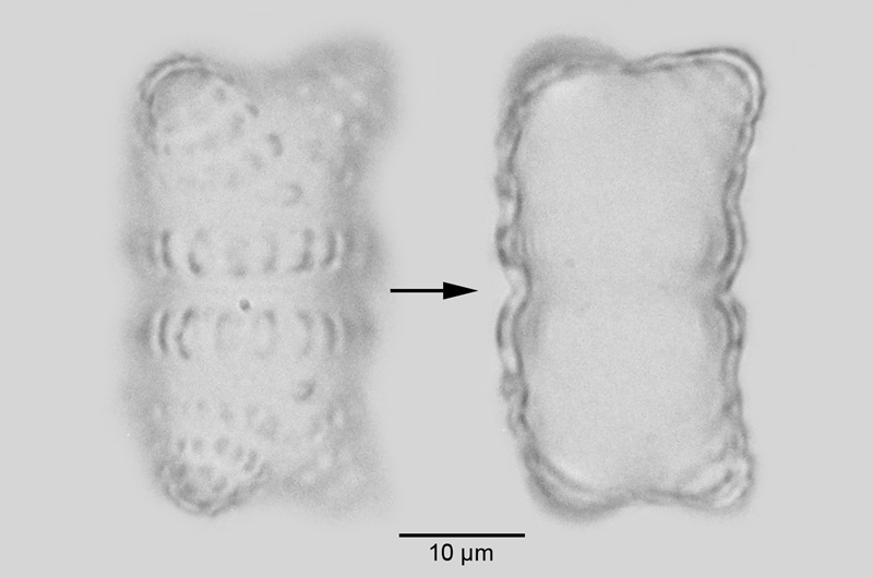 Cell dimensions: L: 35-45 µm; B: 19-25 µm; Is: 16-18 µm.