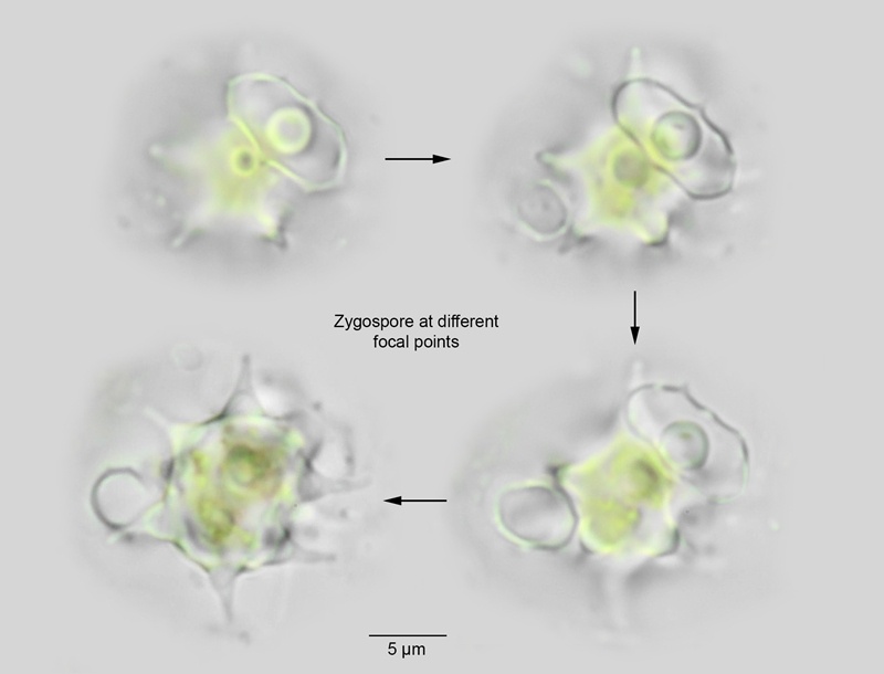 Zygospore minus projections: 10.1 x 7.7 µm; projections with an inflated base: 4.0-5.5 µm.