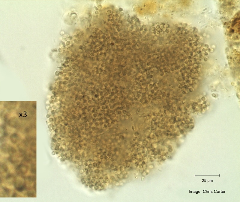 Cell dimensions: Dia: 1-2 µm. Colony: up to 100 µm.