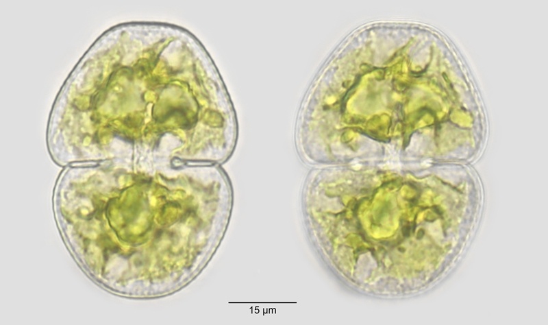 A recently described large taxon in the C. pseudopyramidatum complex. The chloroplast supports several pyrenoids per semicell, typically three, but not always easy to see.
