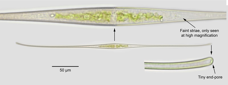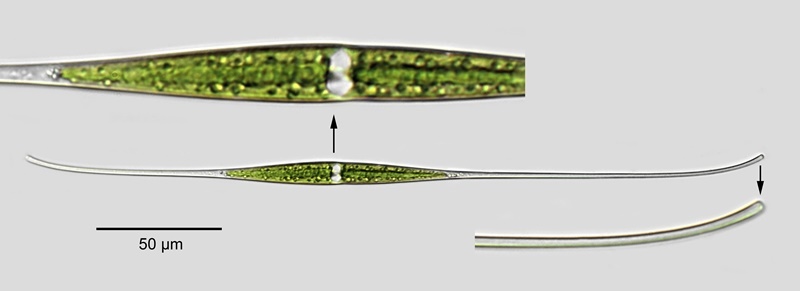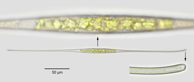Cell dimensions: L: 220-450 µm; B: 8-13 µm; Ap: 1.8-2.1 µm; L/B: (10-)25-37.