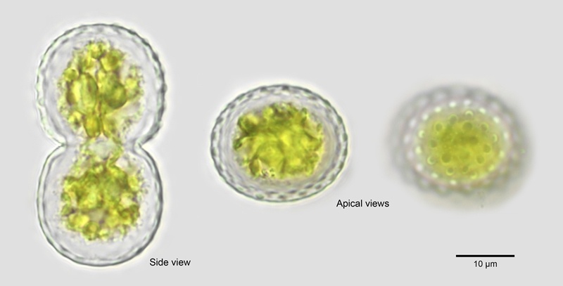 Cell dimensions: L: 42-59 µm, B: 23-31 µm, Is: 15-17 µm; Th: 21-24 µm, L/B: 1.7-1.9.