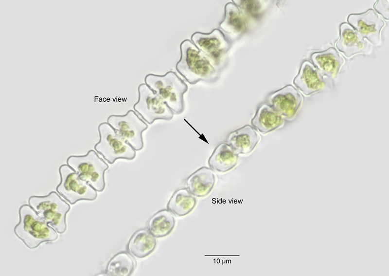 First described and illustrated by Archer (1858: 253, pl. 21: 7) as Sphaerozosma pulchellum. Three years later Archer (1861: 72, pl. 3: 104) moved it to Spondylosium. A filamentous species that can break up into smaller parts, which can then be confused with Cosmarium species.