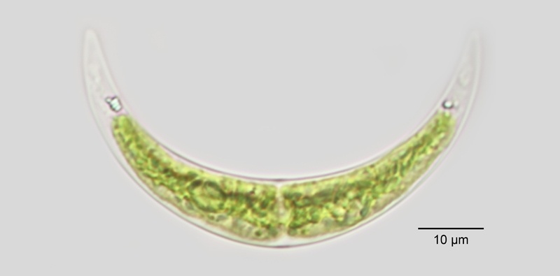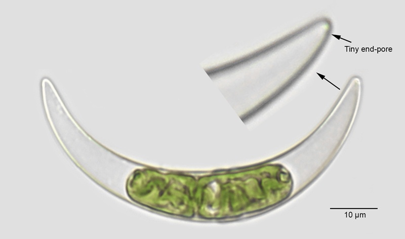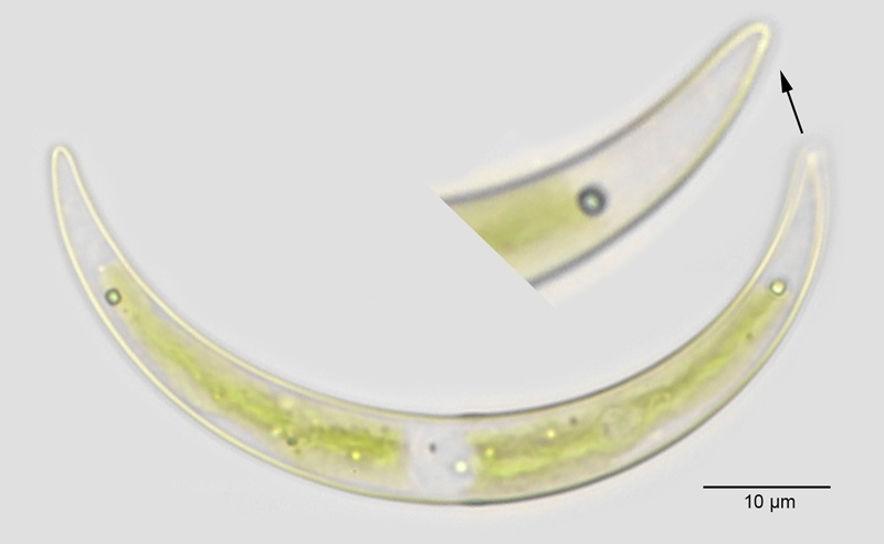 Cell dimensions: L: 40-80 µm; B: 6-12 µm; Ap: 1.0-2.0 µm; Arc: 180; L/B: 5-7.