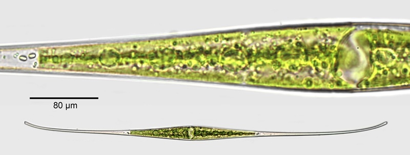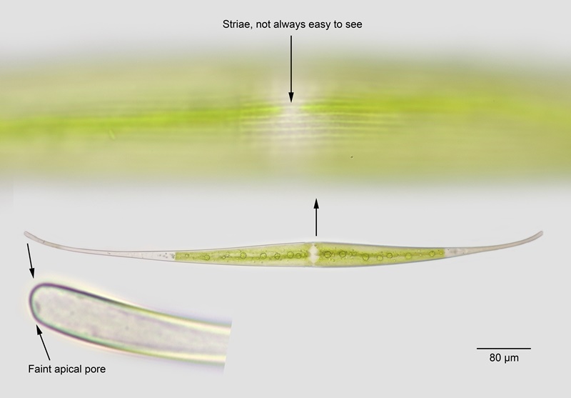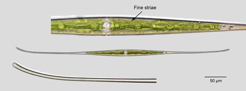 Cell dimensions: L: 260-550 µm; B: 14-27 µm; Ap: 2.8-3.9 µm; L/B: (10-)15-33.