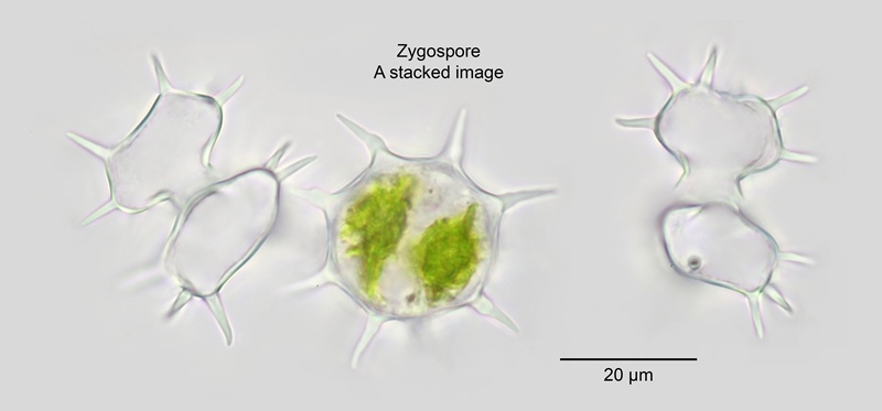 Zygospore dimensions: minus projections: 26 µm; overall: 44 µm.