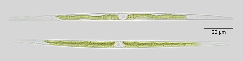 Cell dimensions: L: 17-248 µm; B: 4.8-7.7 µm; Ap: 1.5-2.4 µm; L/B: 28-34.