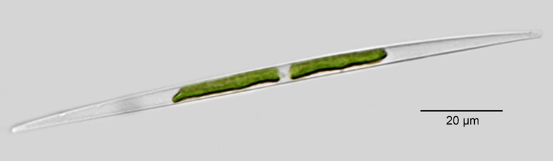 Cell dimensions: L: 90-130 µm; B: 4-6 µm; Ap: 1.5-2.4 µm; L/B: 14-25.