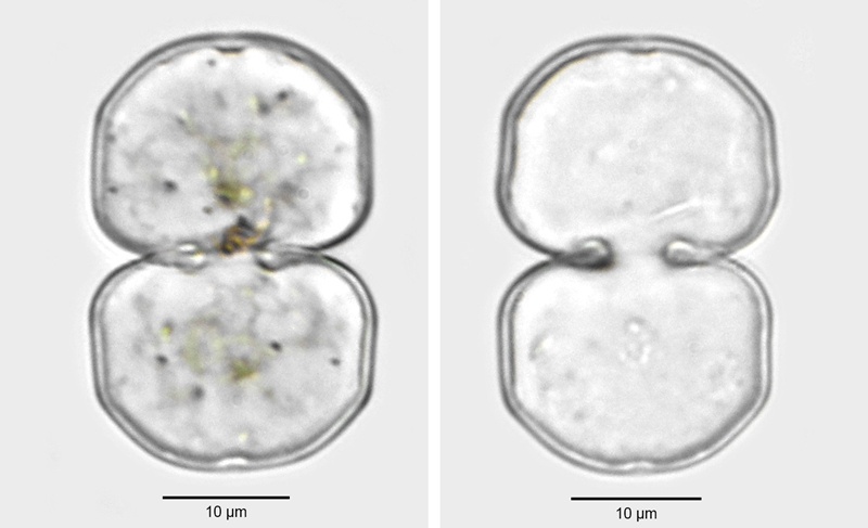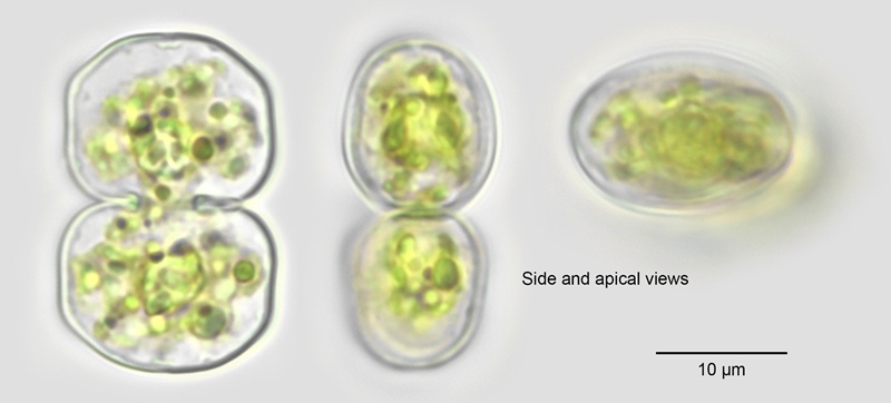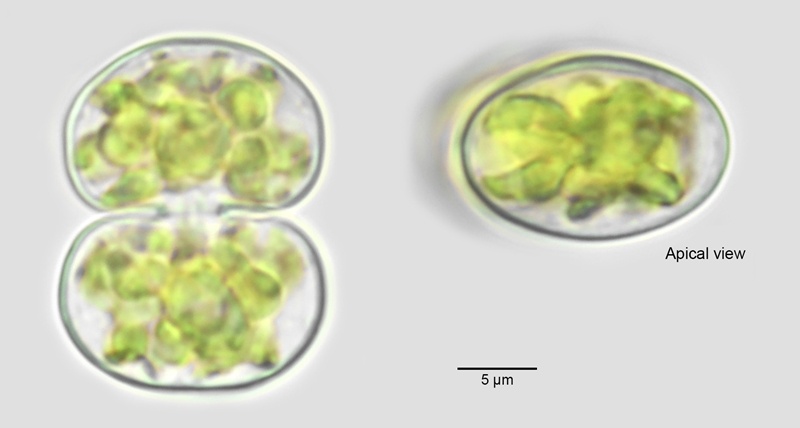 Cell dimensions: L: 23-38 µm, B: 16-23 µm, Is: 4.1-6.8 µm; Th: 11.4-16.6 µm, L/B: 1.35-1.67.