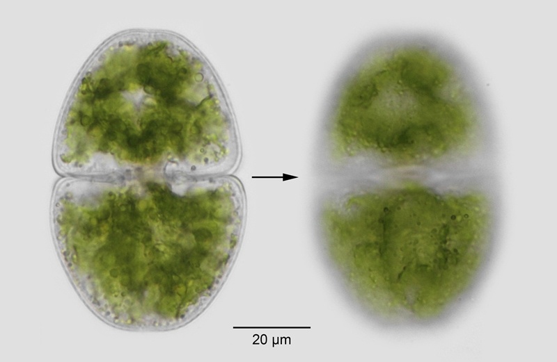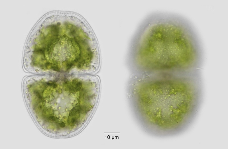 These large pyramidal cells have been much confused and form part of a species complex. Kouwets (2025) has now broken them down into several species. The species under discussion is the largest of the group and can support 2-6 pyrenoids.
