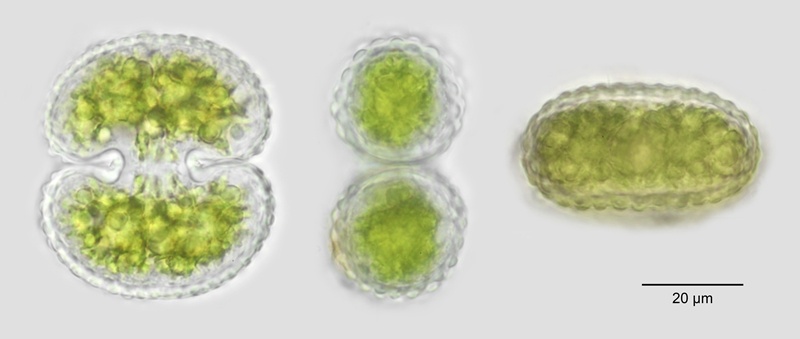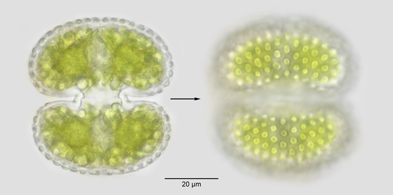 It has become clear in recent years that Cosmarium reniforme is a complex. This nominate variety is common in the Outer Hebrides but still need to be carefully compared with similar taxa. The first image depicted below displays characteristics of C. reniforme and the recently described C. pseudoreniforme M.C. van Westen 2015.