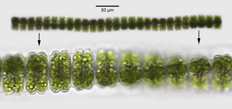 Cell dimensions: L: 12-21 µm; B: 35-50 µm.