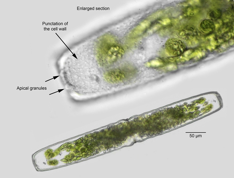 Cell dimensions: L: 400-600 µm; B: 40-70 µm; L/B: 7-12.