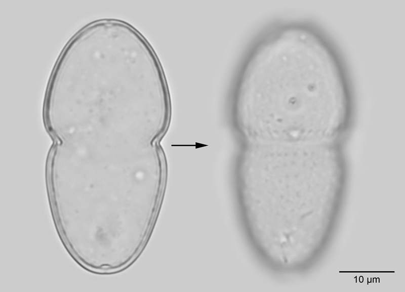 Cell dimensions: L: 40-47 µm; B: 19-23 µm; L/B: 2.00-2.35.