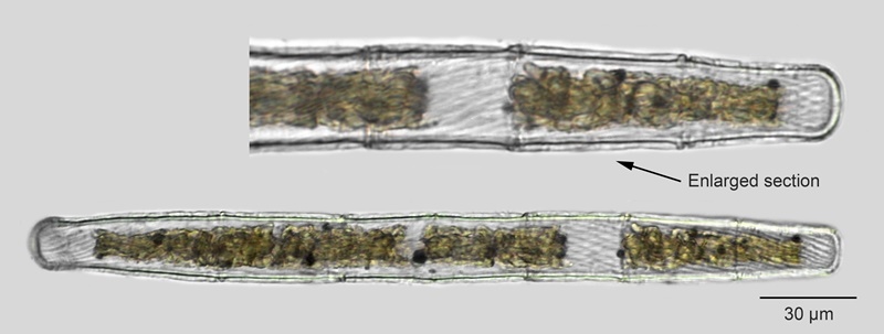 Cell dimensions: L: 100-290 µm; B: 15-30 µm; L/B: 9-15.