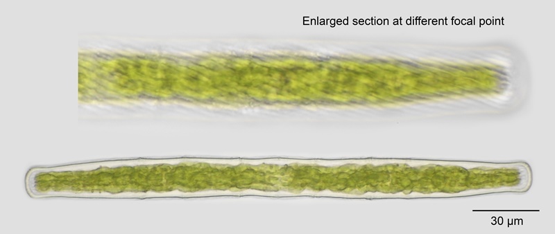 First described and illustrated by Schmidt (1903: 16, pl. 2: 19) as Penium spirostriolatum var. amplificatum. Much later in was raised to species level by Van Westen & Coesel (2012). From extensive field studies in the Dutch province of Drenthe and comparative literature research it appeared that P. spirostriolatum var. amplificatum differs from the nominate variety not only by its capitate cell ends but also by coarser and more spiralized ridges on the cell wall and by distinctly different ecological demands. Var. amplificatum, occurred exclusively in samples with pH<5 whereas var. spirostriolatum, was found predominantly in water with pH>5 (up to 7.3). - Abridged from the authors’ abstract.