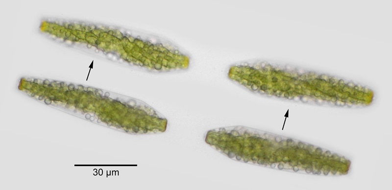 Cell dimensions: L: 50-210 µm; B: 15-30 µm; L/B: 3.0-6.0.