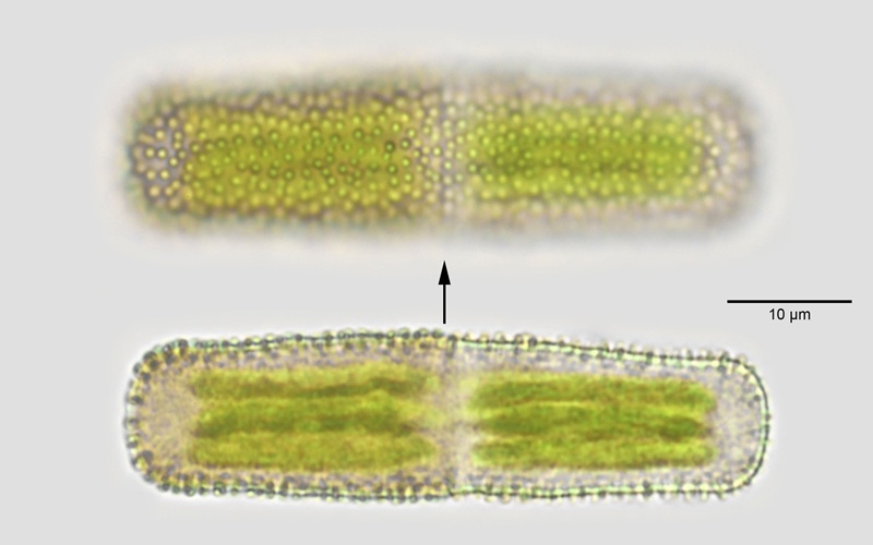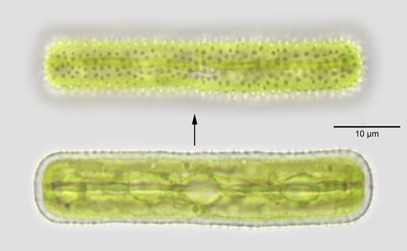 First described and illustrated by Ralfs (1848: 150, pl. 25: 2). Cells cylindrical with truncately-rounded apices, cell-wall with girdle bands, but not always discernible, and covered with small, random, granules.