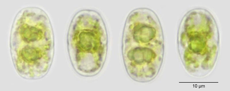 Cell dimensions: L: 12-20 µm; B: 8-13 µm; L/B: 1.30-2-20.