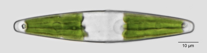 The only different between this variety and the nominate is size, being less than half. These smaller cells could be confused with large cells of the similar Closterium navicula.