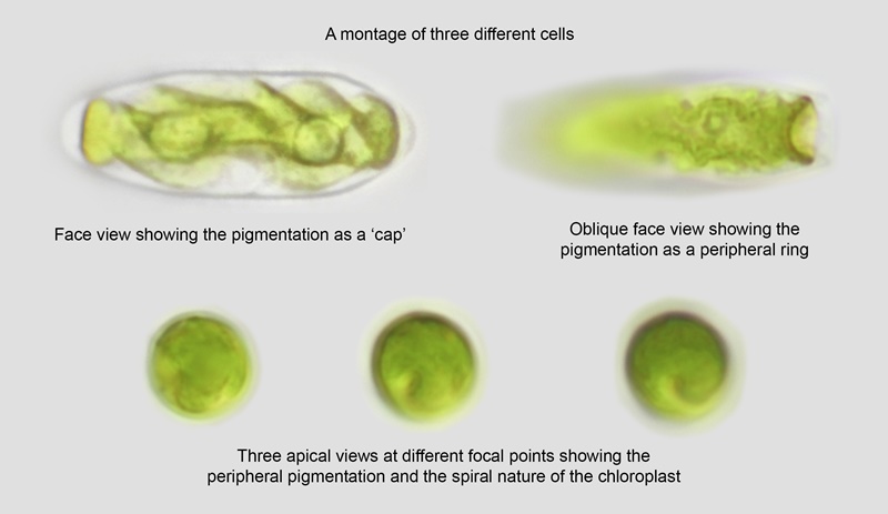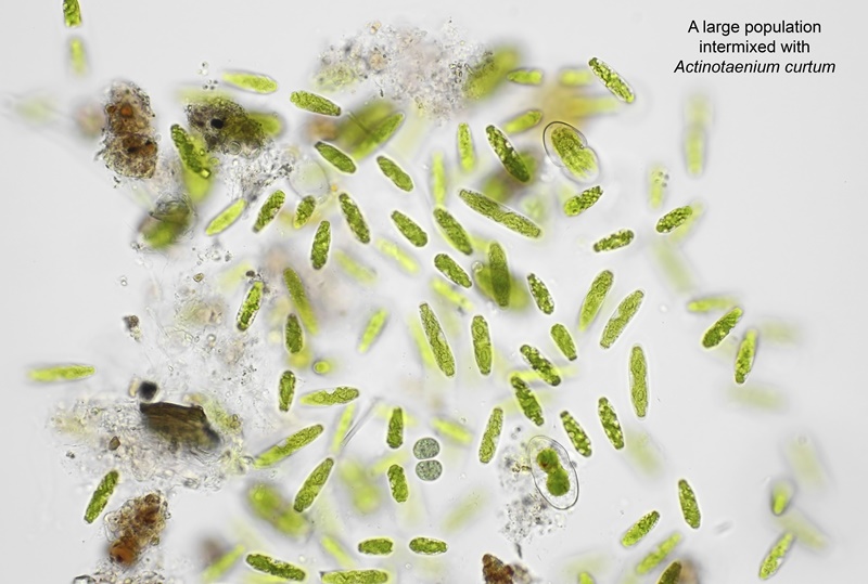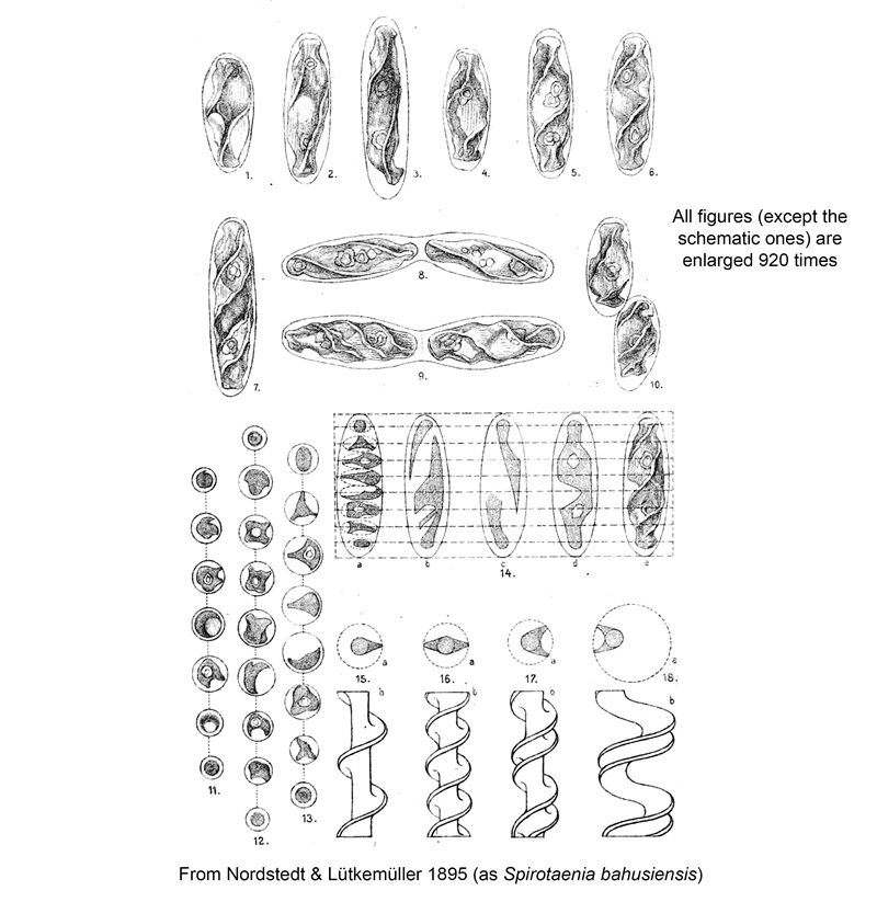 First described and illustrated by Nordstedt & Lütkemüller (1895: 51, pl. 2: 1-18) as Spirotaenia bahusiensis. More recently, Coesel (2002: 72) moved it to Tortitaenia. The axile chloroplast is spiralled and has a reddish peripheral ring at the poles.
