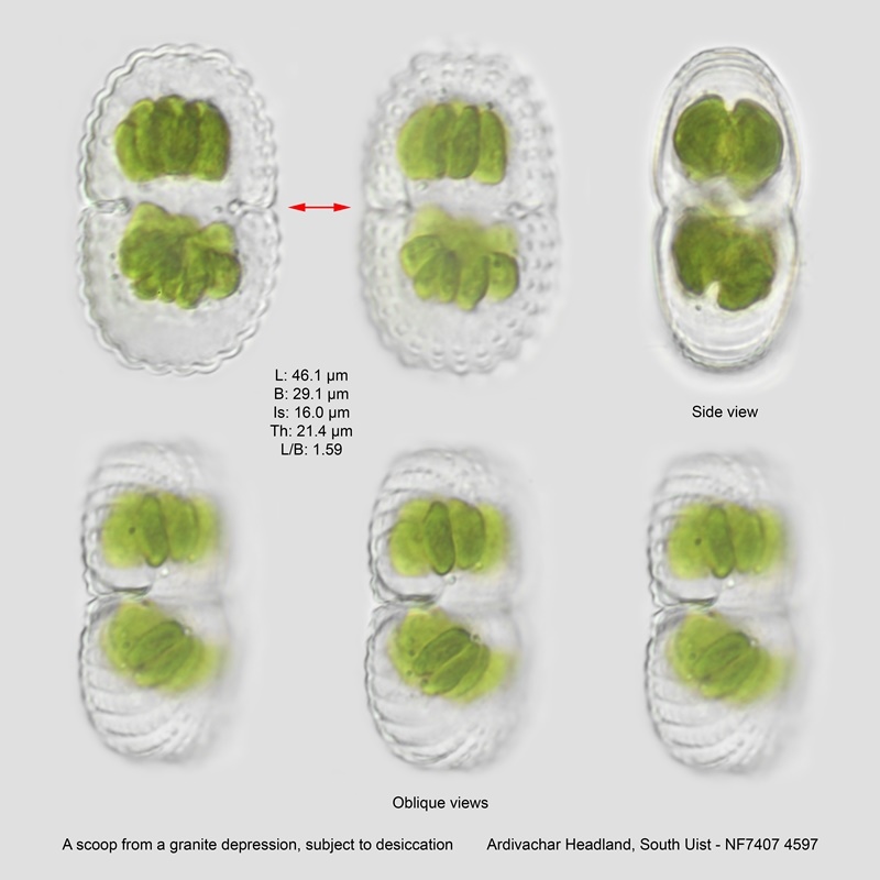 C. speciosum is a species complex with a broad size-range. Variety simplex was named for the simple granules (as opposed to var. biforme with emarginate granules). However, intermediate forms have been found confusing the situation. I'm grateful to Frans Kouwets for confirming my Haclait and Ardivachar finds.