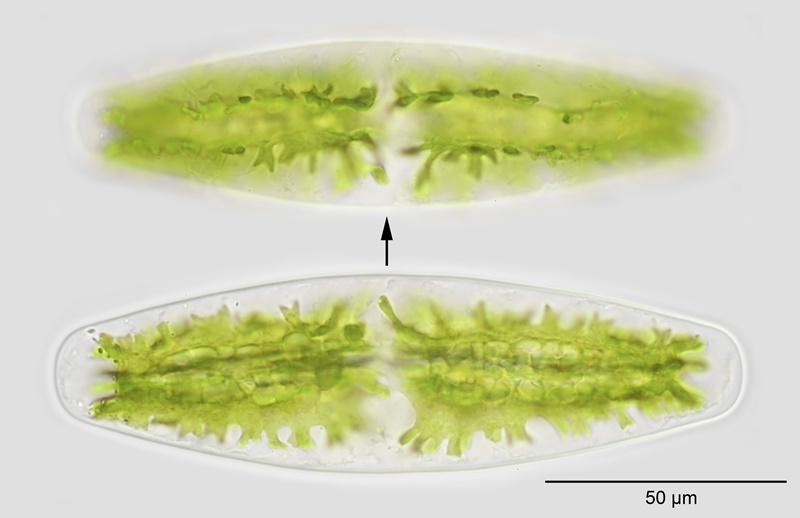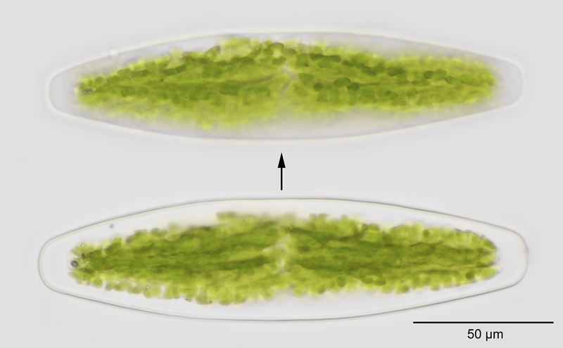 Cell dimensions: L: 88-226 µm; B: 29-45 µm, L/B: 2.8-6.1.