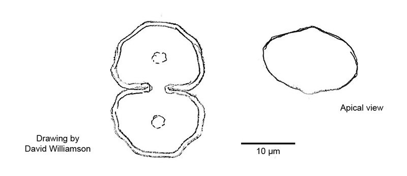 Single cell dimensions: L: 24.6 µm, B: 17 µm, Is: 4 µm; Th: 13 µm, L/B: 1.45.