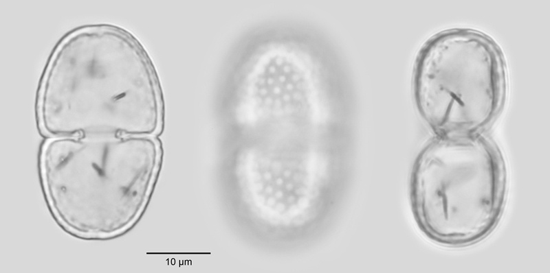 Cell dimensions: L: 32.6-35 µm; B: 19-21 µm; Is: 6-8 µm; Th: 14-16 µm; L/B: 1.63-1.70.