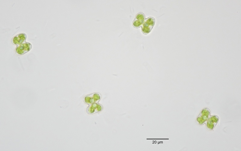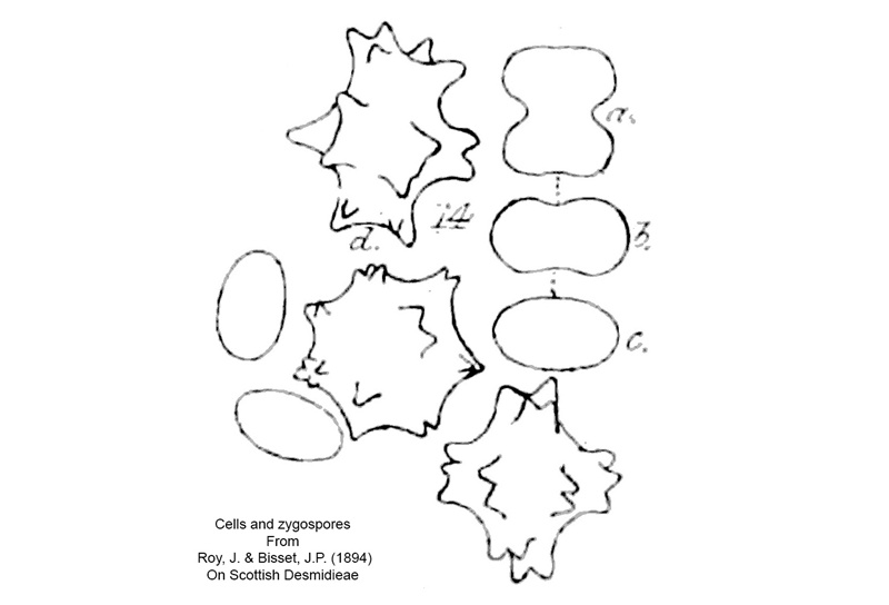 Cells small, nearly as broad as long, sinus deep and opening widely. Side-view elliptical, chloroplast axile with a single pyrenoid. The cells are loosely joined by very delicate gelatinous threads, which are hard to seen in the light microscope. Usually no more than four cells are found together and then in a single profile. Roy & Bisset (1894: 254) describe the zygospore as: “… large in proportion to the fronds, extremely irregular in shape, and reddish-brown in colour. Grows apparently in free groups.”