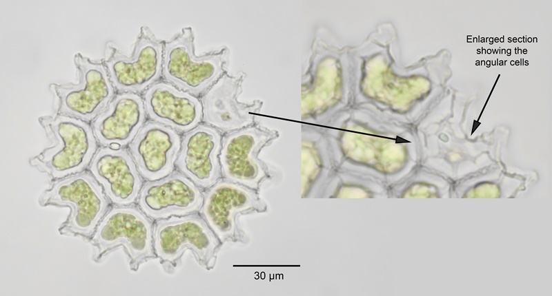 First described by Ehrenberg in Meneghini (1840: 210) but not illustrated. Of the Pediastrum species, this is the only one to show marked angularity of the cells.