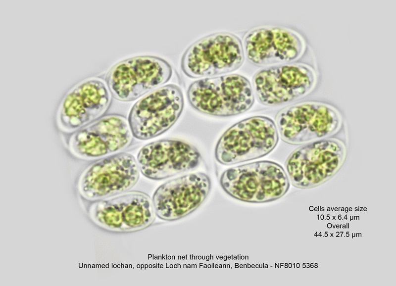 More commonly known as Crucigeniella rectangularis it’s the commonest member of the genus. Found in groups of 16 or more cells (syncoenobia), they inhabit ponds, lochs and even slow-flowing rivers.