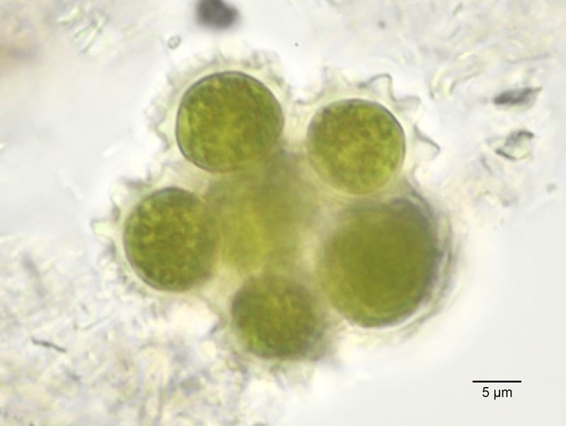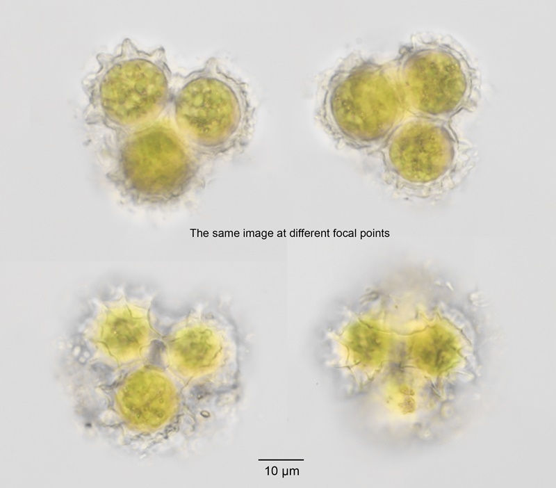 Coenobia broadly spherical, usually 4, 8, & 16. Cell diameters: 10-24 µm.