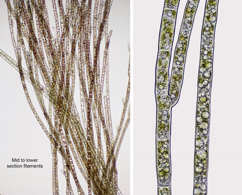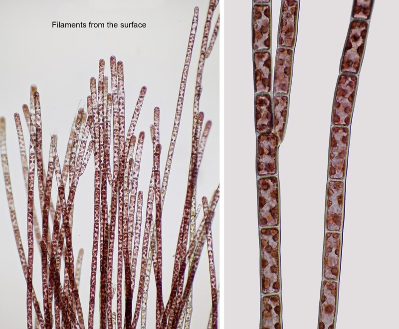 Plants growing on rocky and sandy substrates have filaments densely packed together, helping to bind the surface. It also grows in crevises where the filaments are fastigiate and sparsely branched. Common