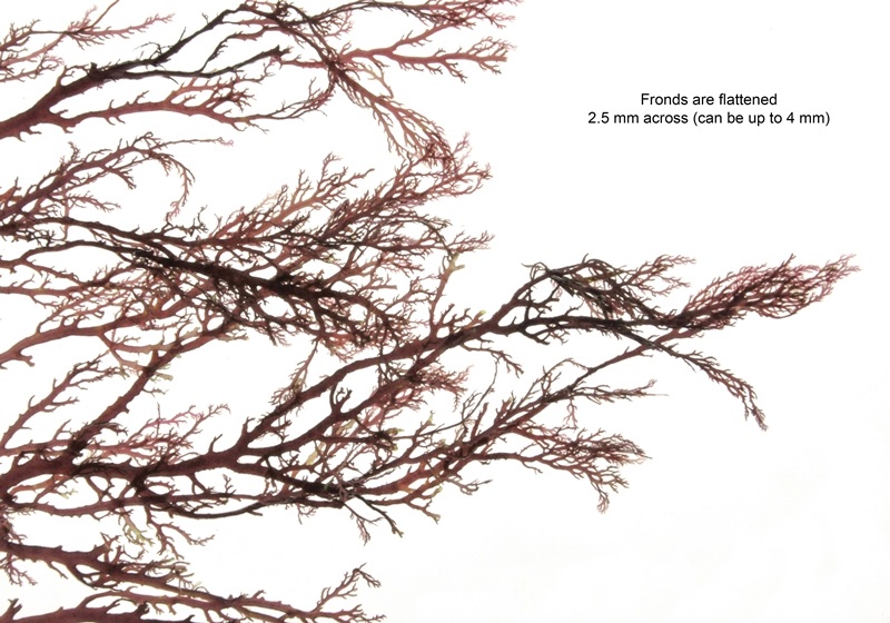 A common subtidal species, growing on rock. Cartilaginous with broad flattened fronds