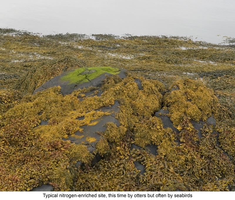 Often found on sites nitrogen-enriched by seabirds and where otters mark their territories by sprainting. Not uncommon
