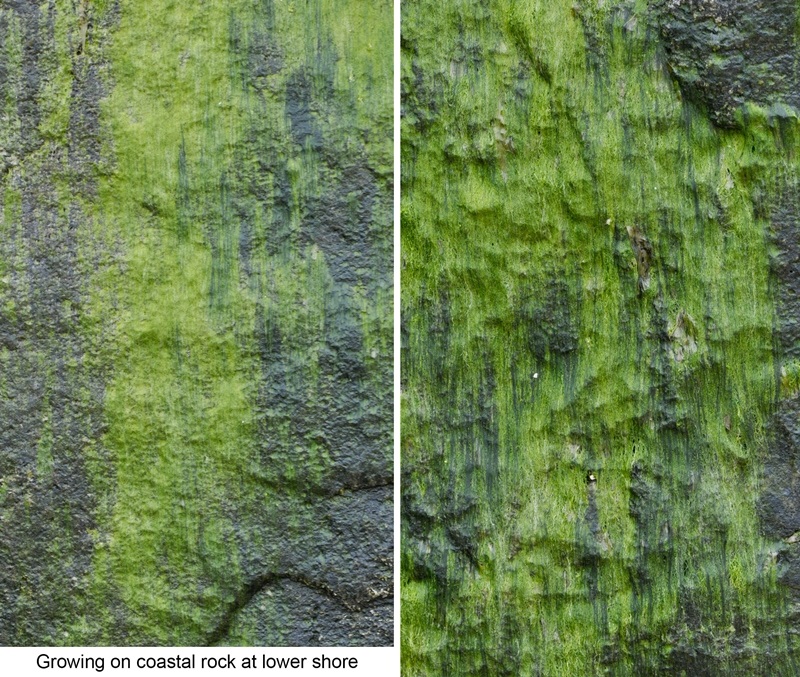 A common species of the mid to lower shore, covering rocks. Composed of long fine filaments