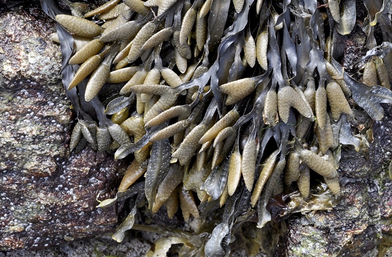 Found on the middle shore, even on exposed western coasts but more prolific in sheltered situations. Air-bladders often appear in pairs and the fronds have a pronounced midrib. Some examples are almost lacking in air-bladders which can cause consusion with other species