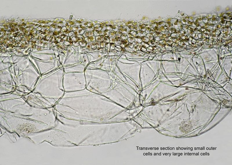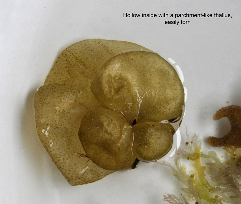 The thallus is a hollow 'bag', variously shaped. Dry and papery to the touch and easily torn. An introduced species from the north-east Pacific, but not thought to be harmful to the local environment